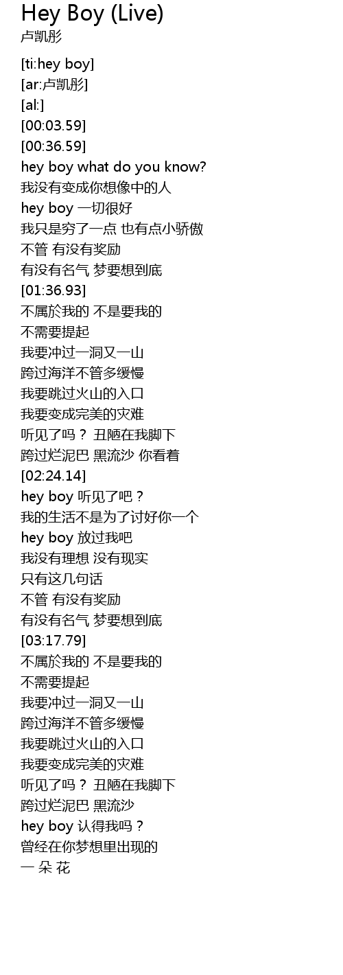 | [04:03.99] | hey boy 认得我吗? |