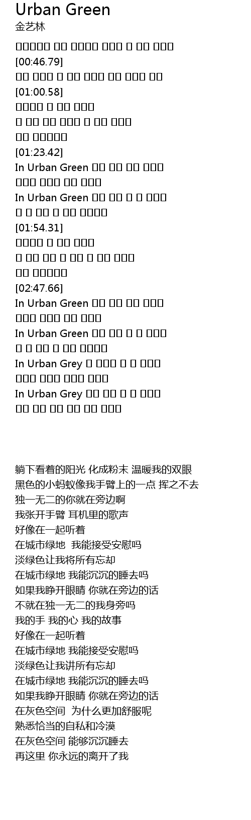 | [01:39.72] | In Urban Green 나는 깊이 잘 수 있을까 |