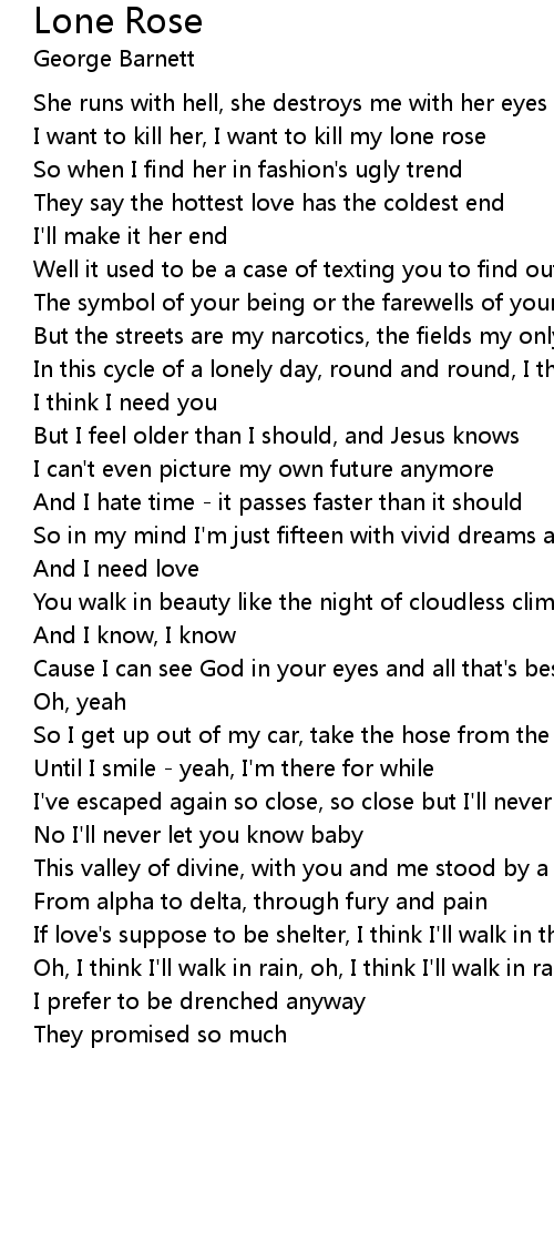 I want to kill her, I want to kill my lone rose |