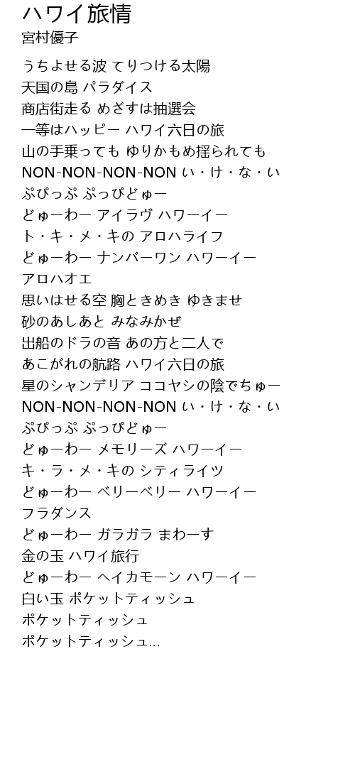 | 歌曲 | ハワイ旅情 |