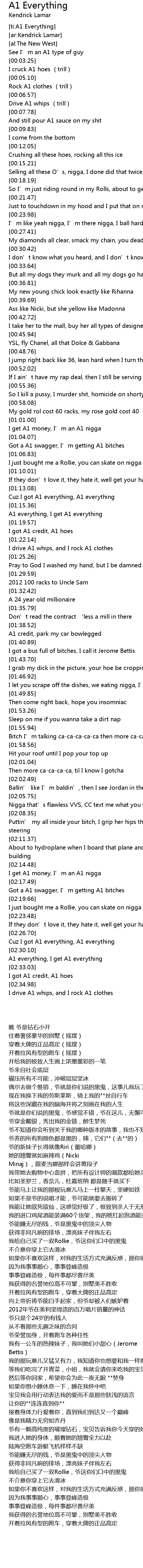 | [02:26.89] | Cuz I got A1 everything, A1 everything |