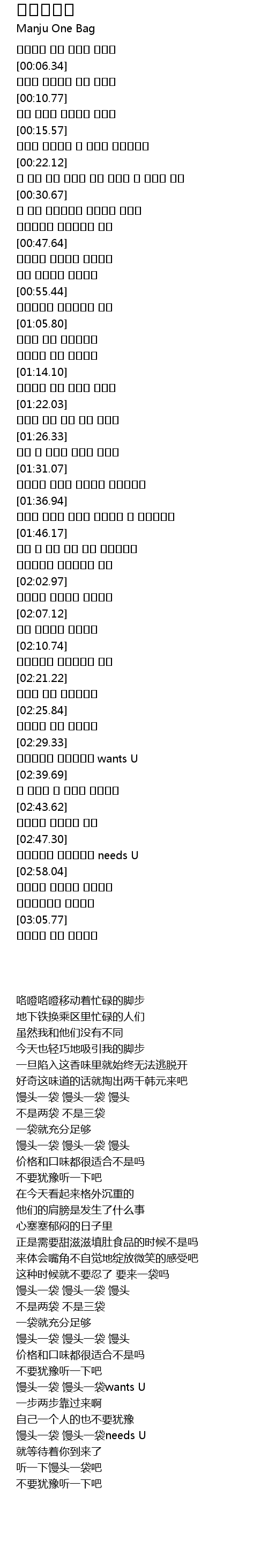 | [02:47.99] | 만쥬한봉지 만쥬한봉지 needs U |