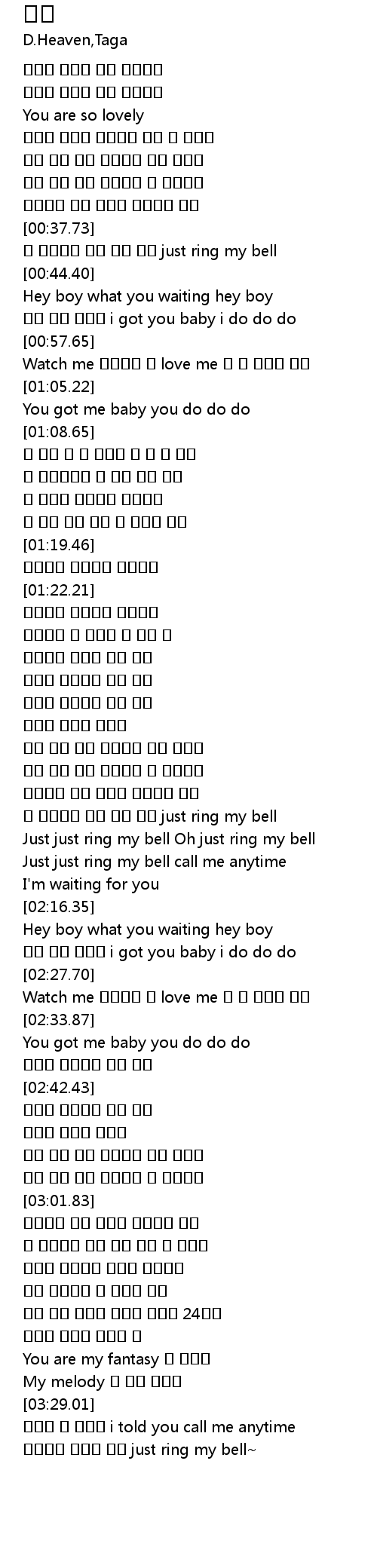 | [03:32.57] | 기다림의 시간은 그만 just ring my bell~ |