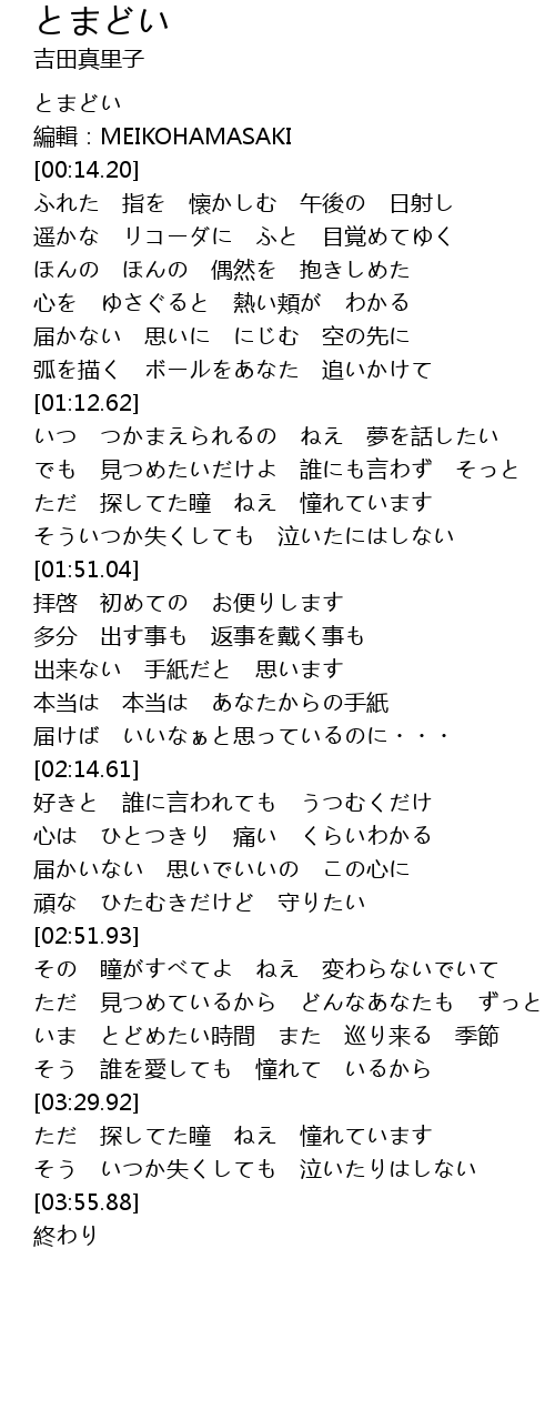 | [00:12.01] | 編輯:MEIKOHAMASAKI |