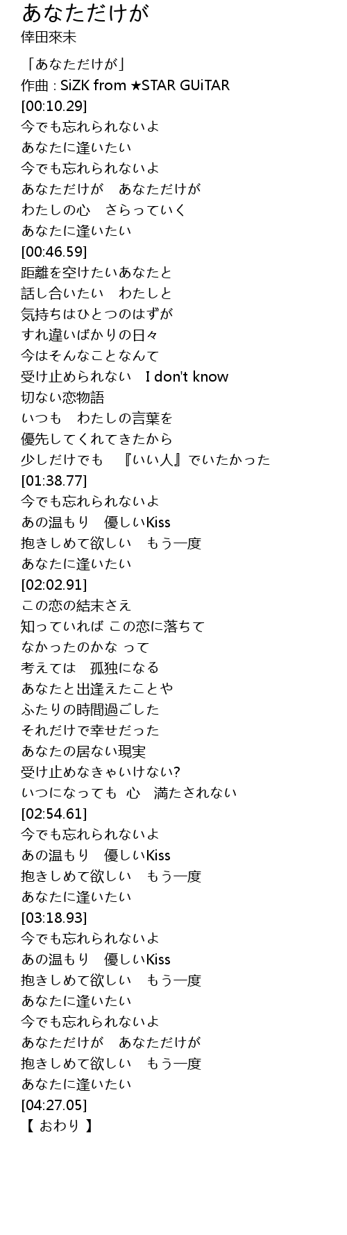 | [00:02.29] | 「あなただけが」 |
