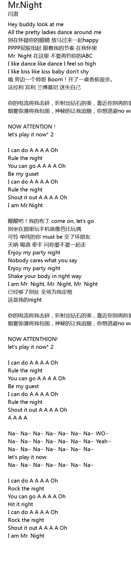 | I am Mr. Night, Mr. Night, Mr. Night | |