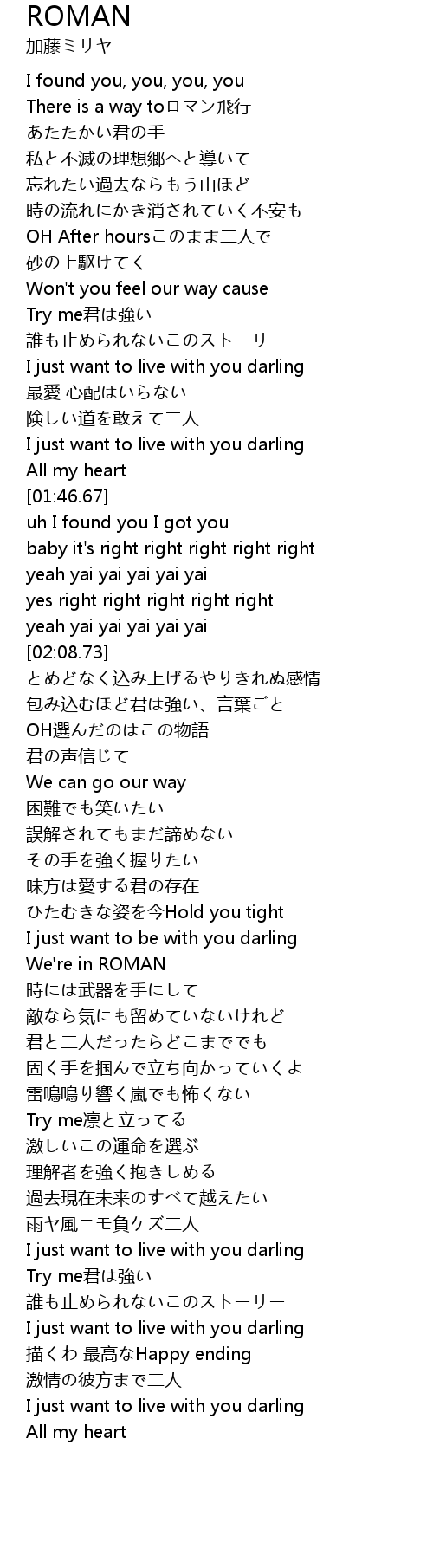 | [02:15.22] | 包み込むほど君は強い、言葉ごと |