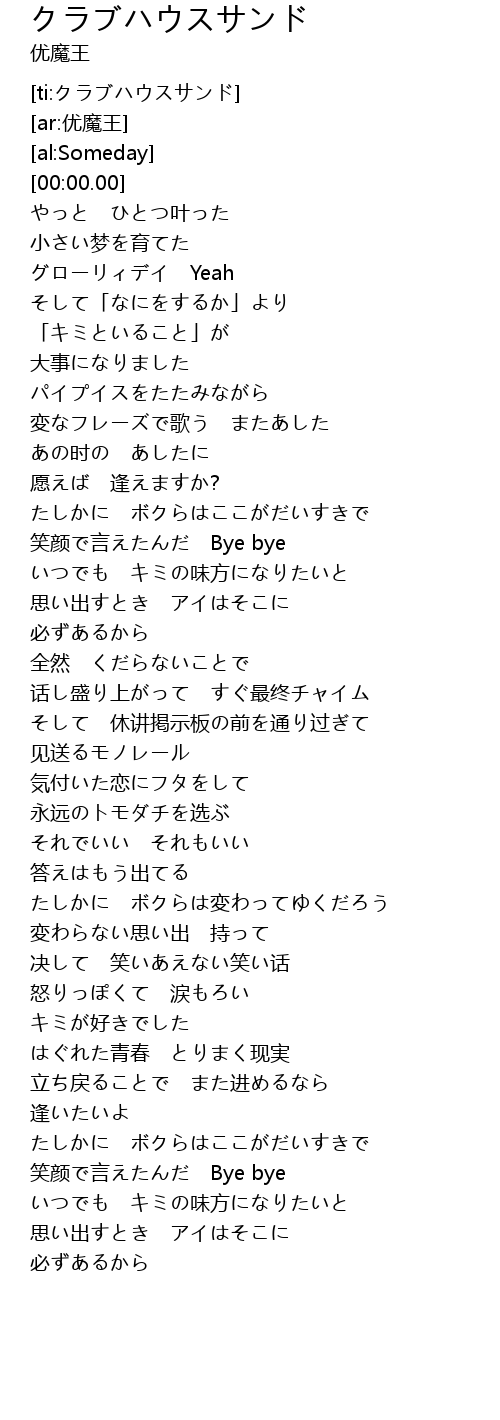 | [ti:クラブハウスサンド] | |