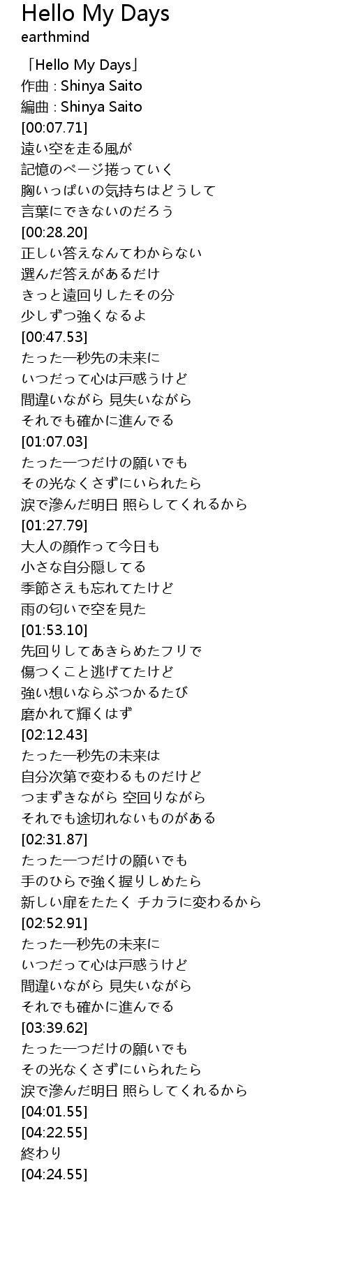 「Hello My Days」 |