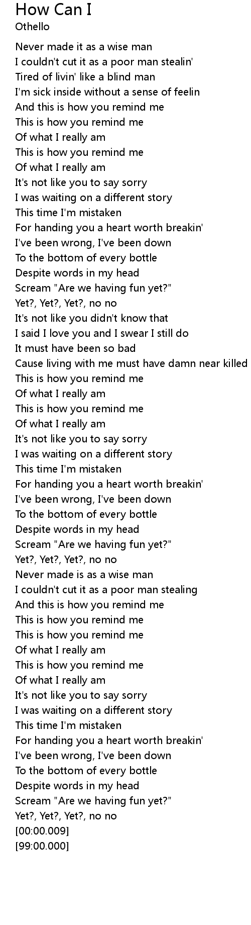 | [00:22.56] | This is how you remind me |