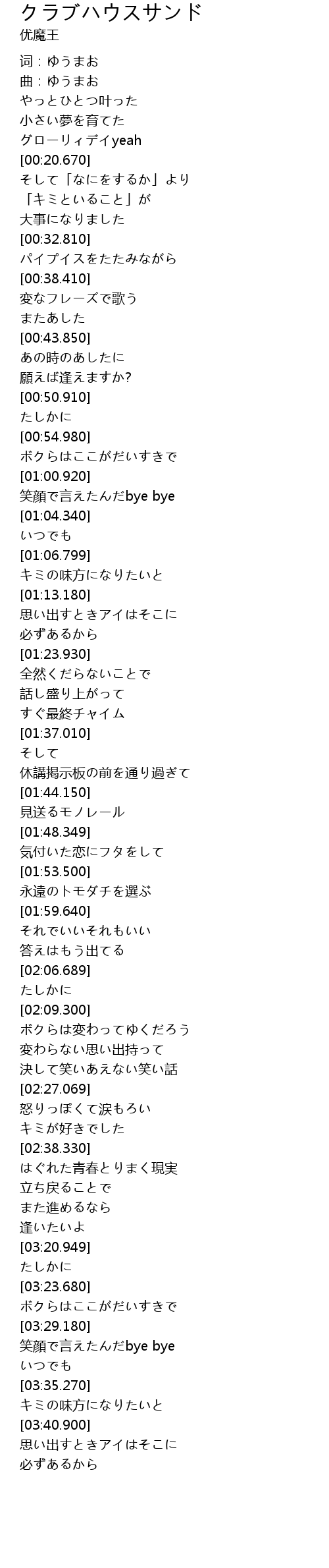 | [00:07.910] | 曲:ゆうまお |