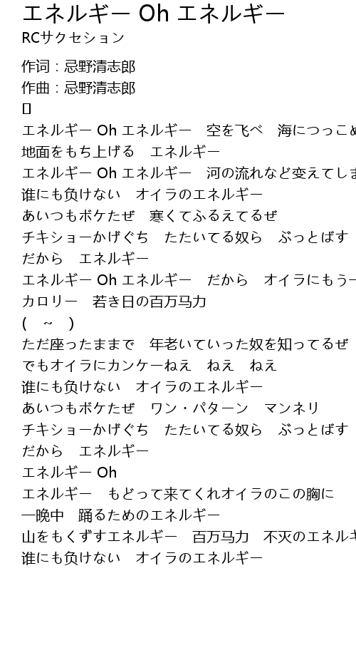 | エネルギー Oh エネルギー だから オイラにもう一度 | |