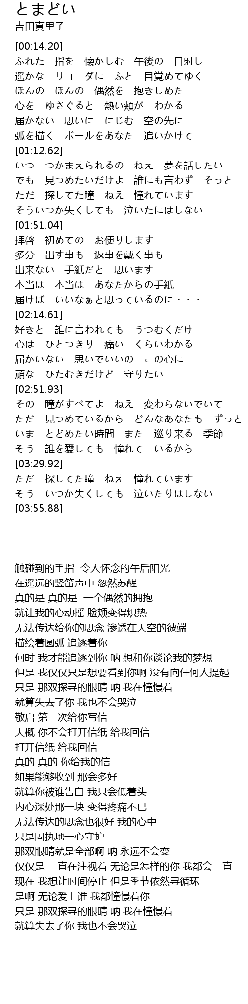 | [02:08.01] | 本当は 本当は あなたからの手紙 |