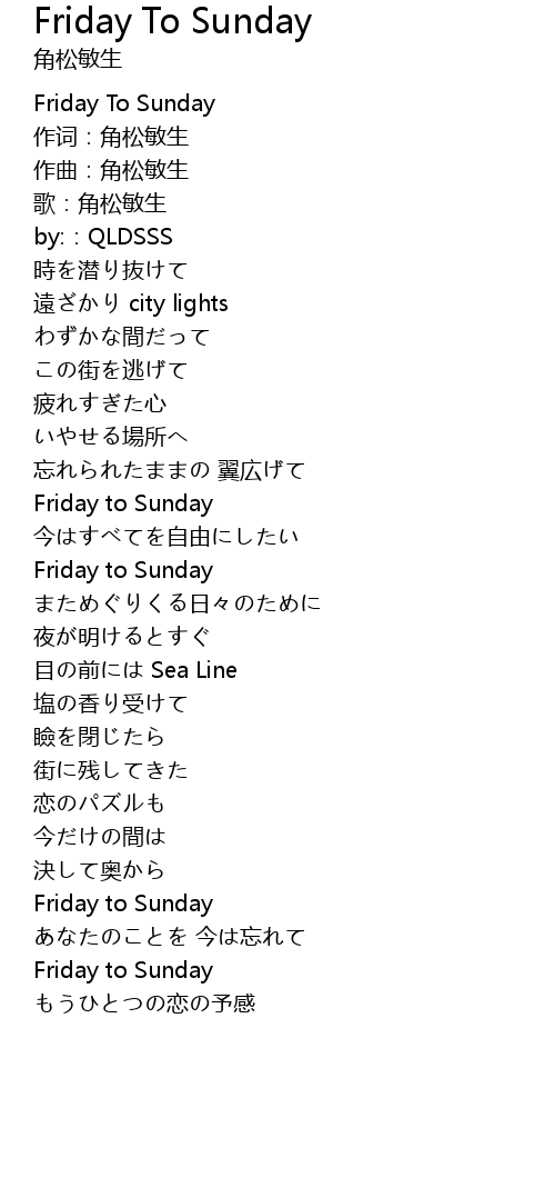 | [00:00.612] | Friday To Sunday |