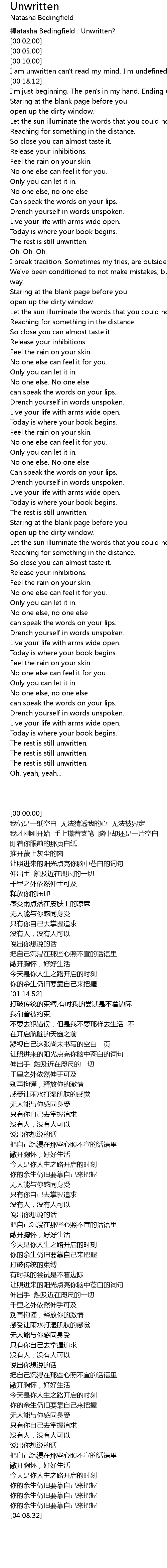 | [00:00.00] | yong atasha Bedingfield : Unwritten? |