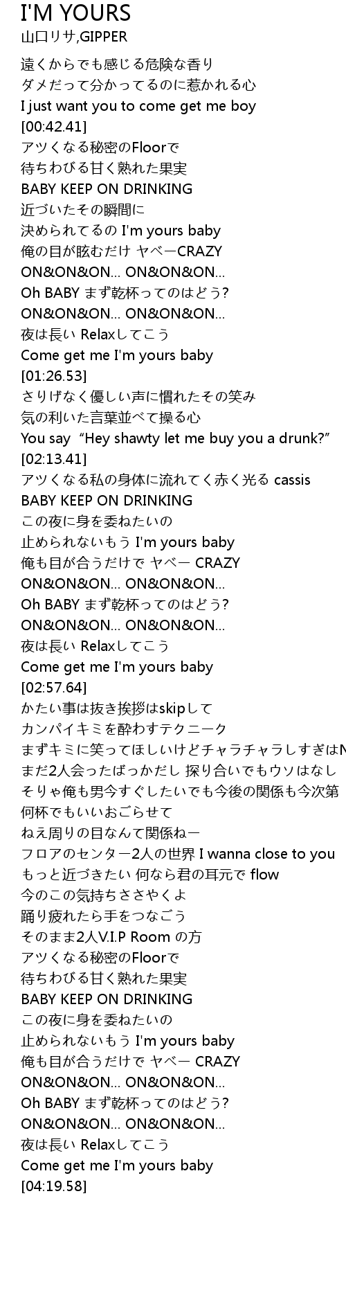 | [03:49.41] | 止められないもう I'm yours baby |