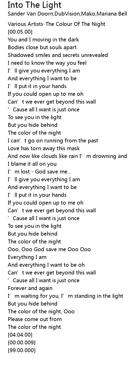 | [01:13.81] | The color of the night |