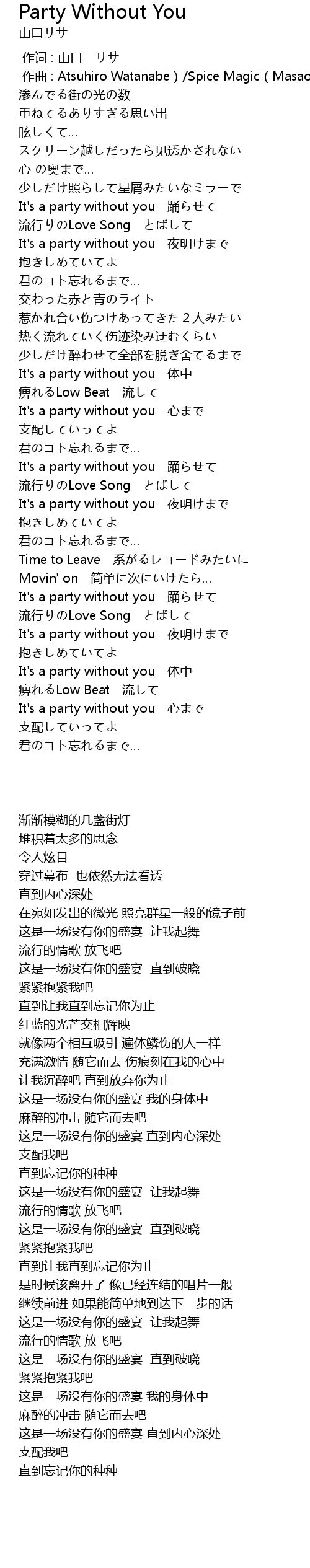 | [02:43.954] | It's a party without you 夜明けまで |