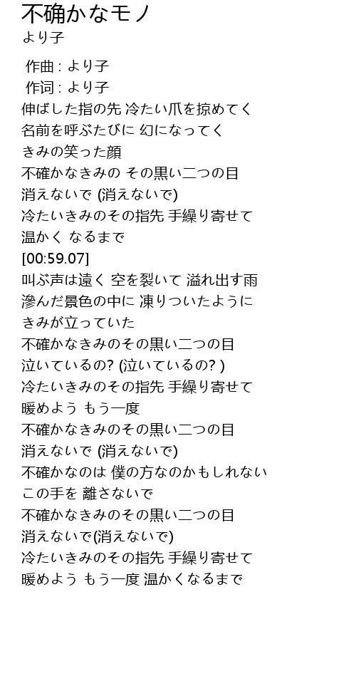 | [00:35.55] | 不確かなきみの その黒い二つの目 |