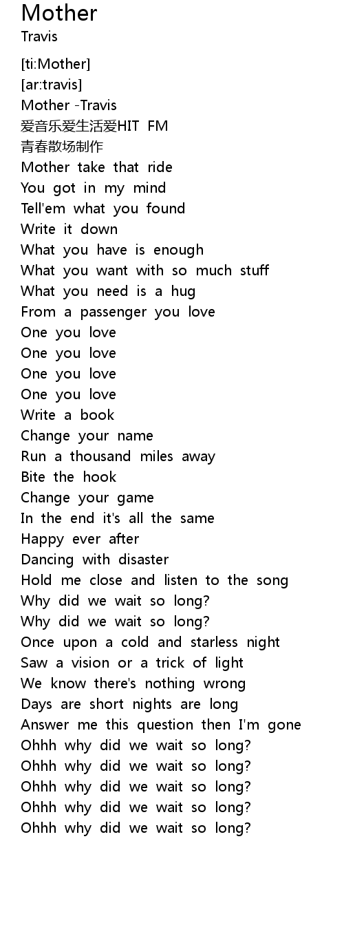 | [00:04.898] | ài yīn yuè ài shēng huó ài HIT FM |