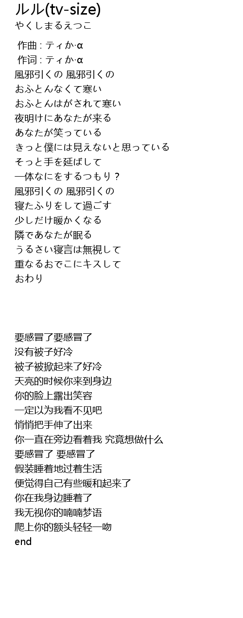 | [00:05.750] | 風邪引くの 風邪引くの |
