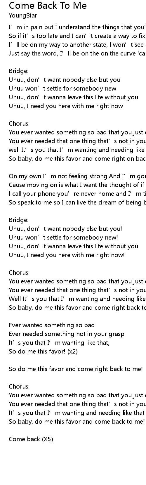 | So baby, do me this favor and come back to me! | |