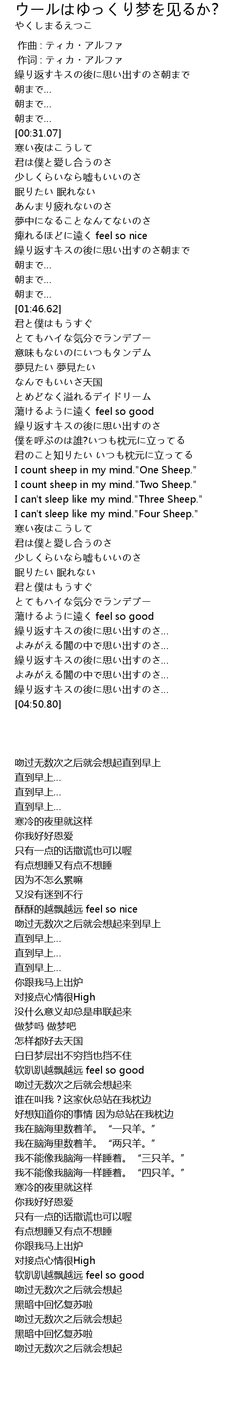 | [03:01.41] | I count sheep in my mind."One Sheep." |