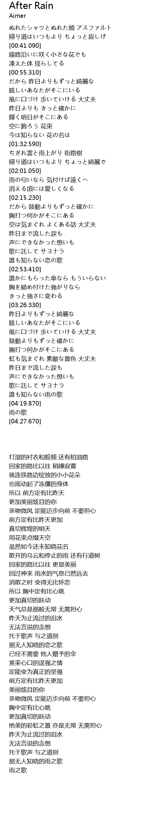 | 歌曲 | After Rain |