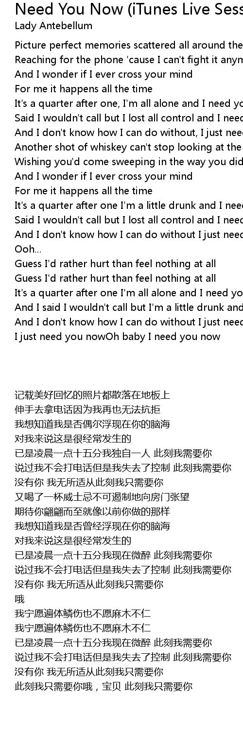 And I said I wouldn't call but I'm a little drunk and I need you now |