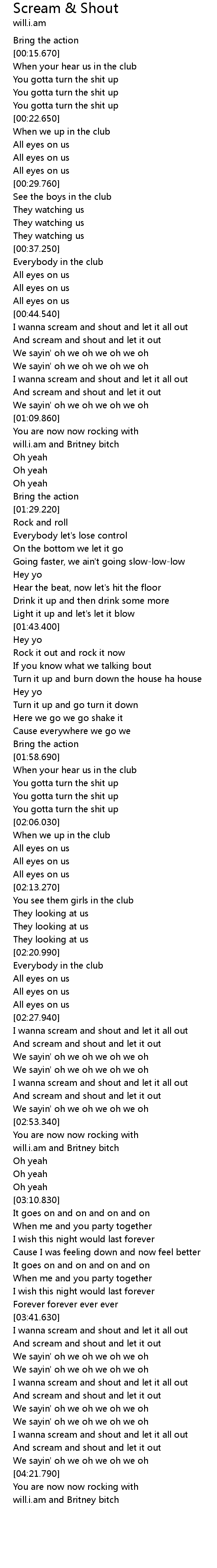 I wanna scream and shout and let it all out |