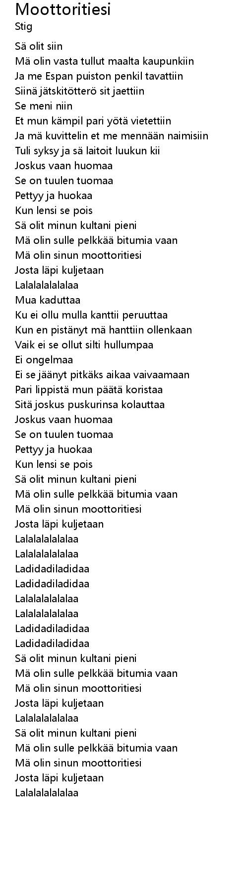 | [02:04.75] | M olin sinun moottoritiesi |