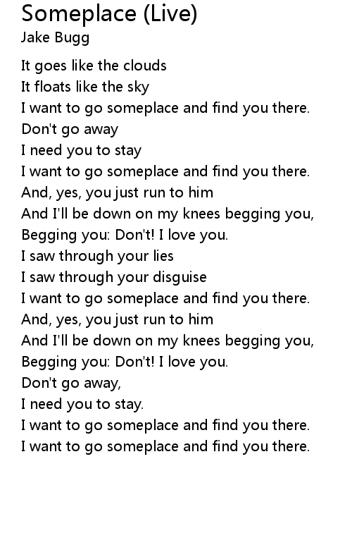 I want to go someplace and find you there. |