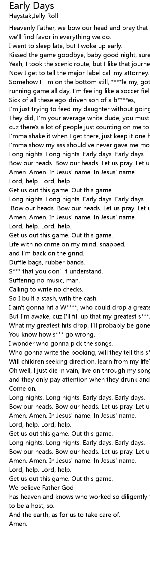 | [01:58.70] | Long nights. Long nights. Early days. Early days. |