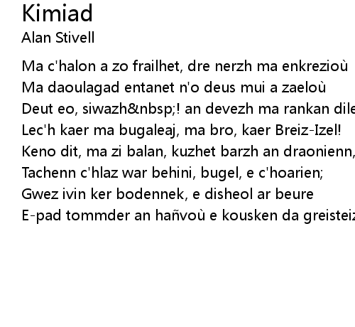 | Lec'h kaer ma bugaleaj, ma bro, kaer Breiz-Izel! | |