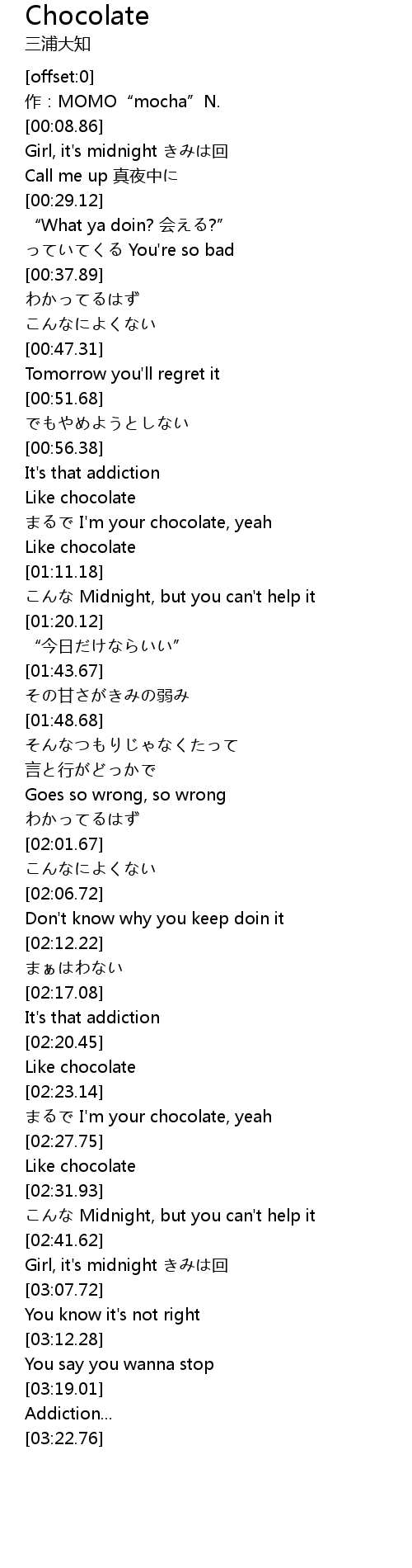 | [02:24.26] | まるで I'm your chocolate, yeah |