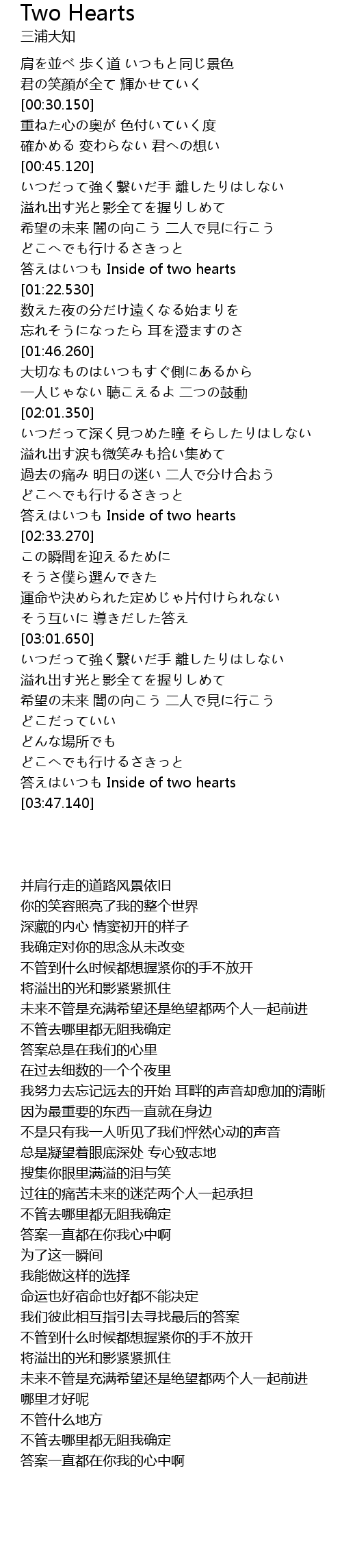 | [03:36.970] | 答えはいつも Inside of two hearts |