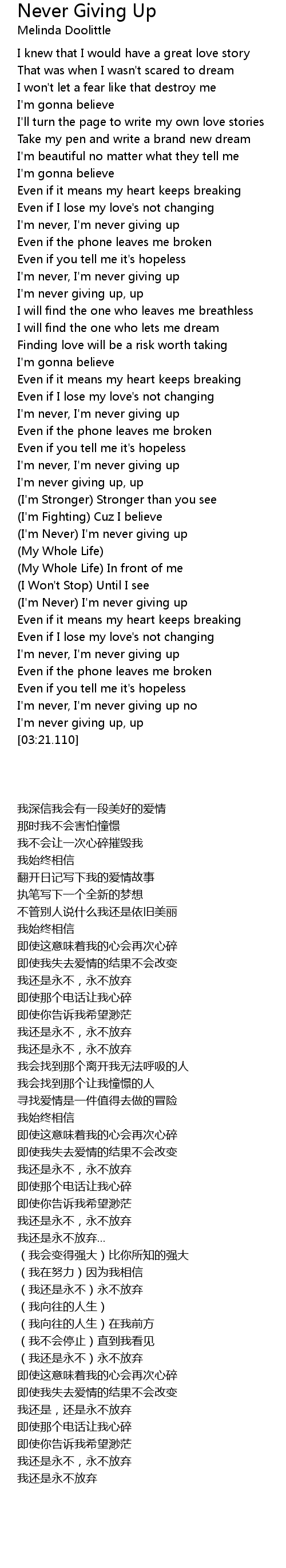 I'm never, I'm never giving up |
