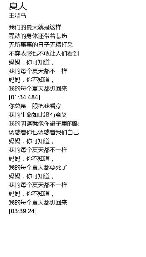 | [03:12.34] | 我的每个夏天都不一样 |