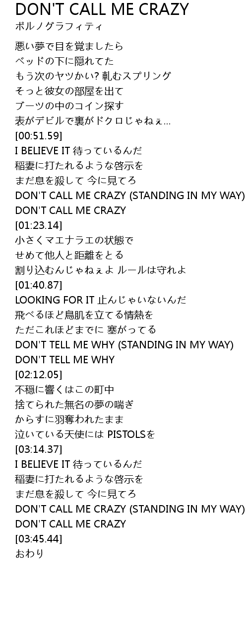 | [01:20.30] | DON'T CALL ME CRAZY |