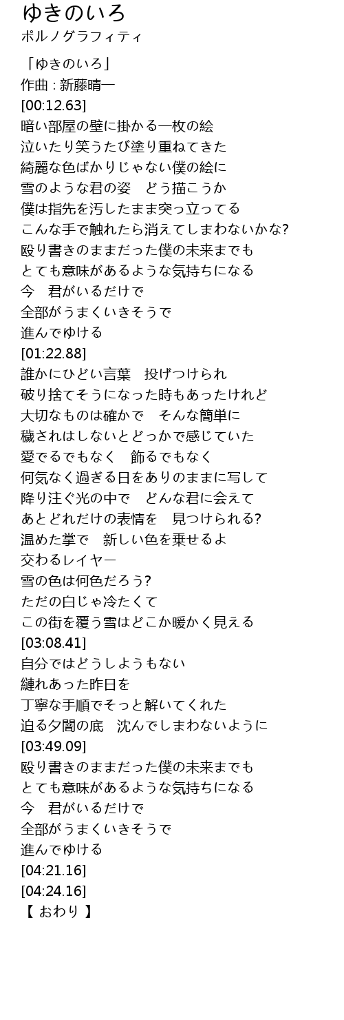 | [02:41.29] | 雪の色は何色だろう? |