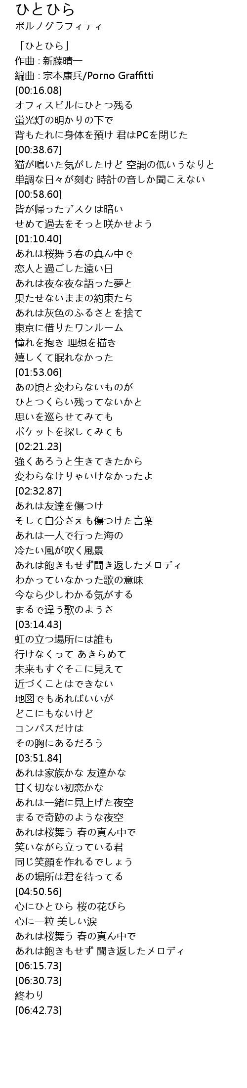 | [00:00.08] | 「ひとひら」 |