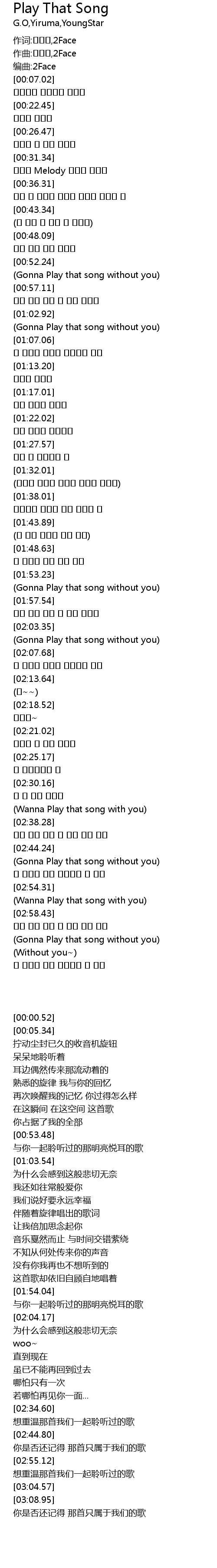 | [00:05.34] | 编曲:2Face |
