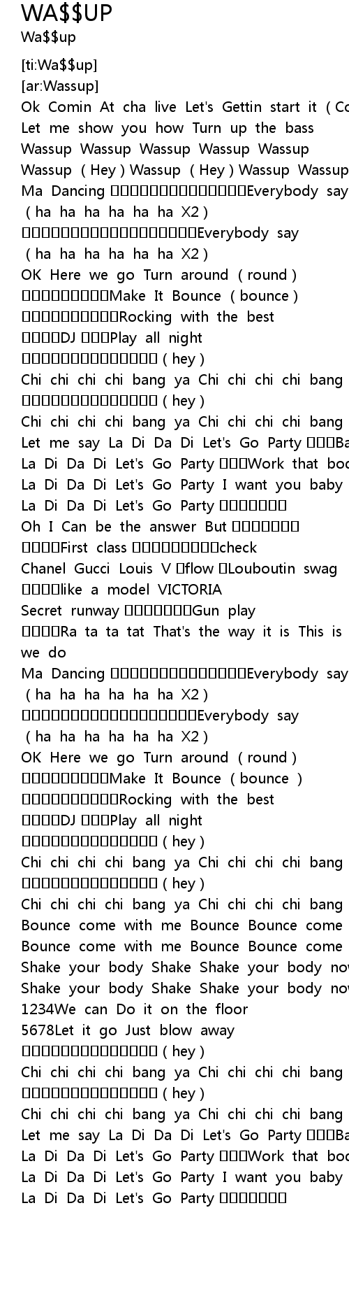 | [00:12.114] | Wassup Hey Wassup Hey Wassup Wassup Wassup |