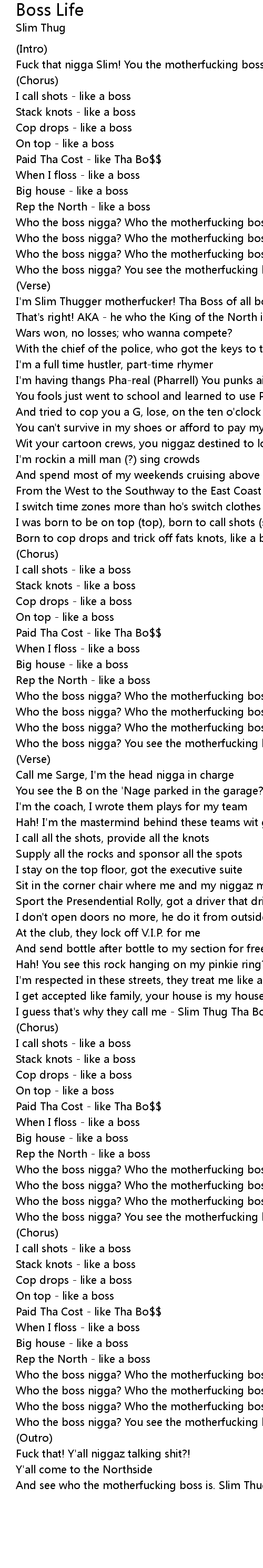 | And see who the motherfucking boss is. Slim Thug! |