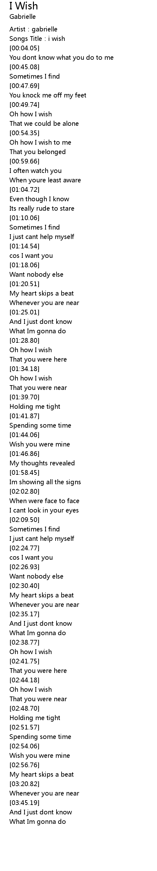 | [01:45.36] | Wish you were mine |