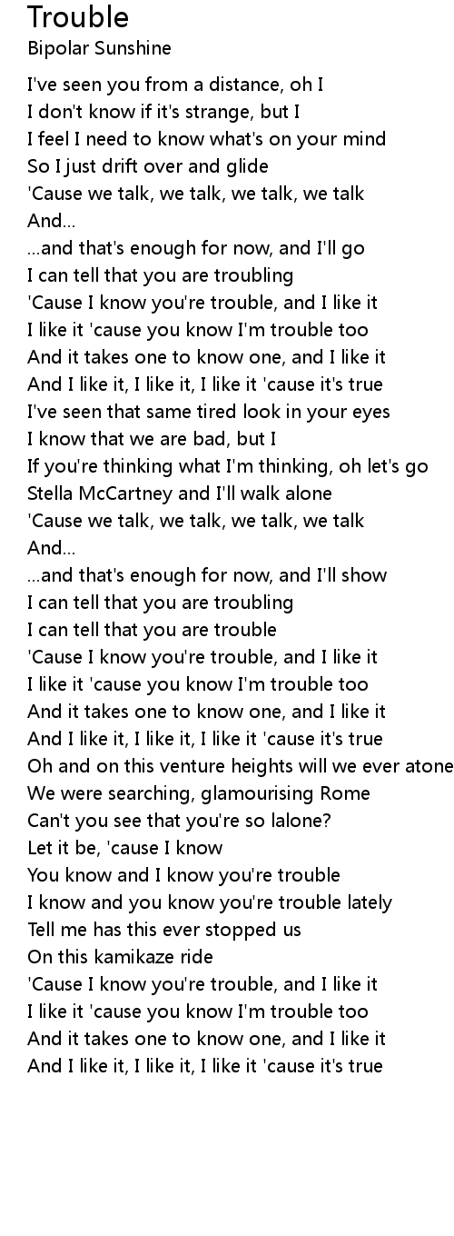 You know and I know you're trouble |
