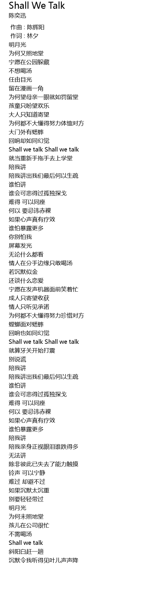 | 歌曲 | Shall We Talk |