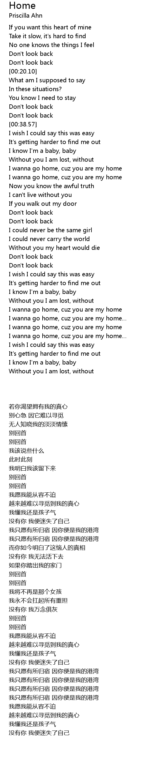 | [02:22.92] | I wanna go home, cuz you are my home |