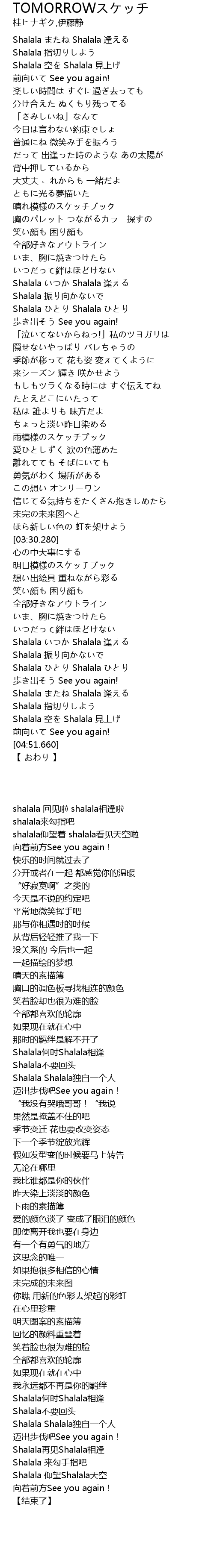 | [04:34.150] | Shalala またね Shalala 逢える |