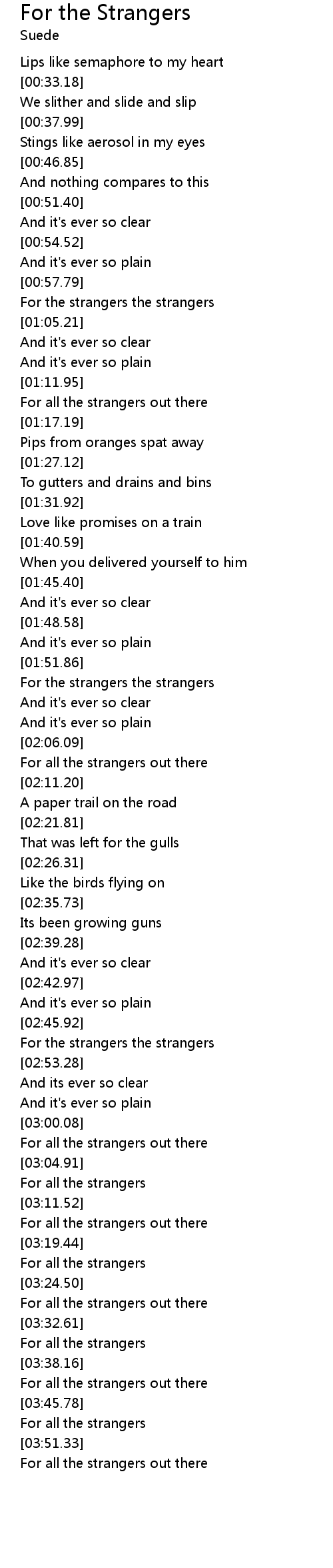 For the strangers the strangers |